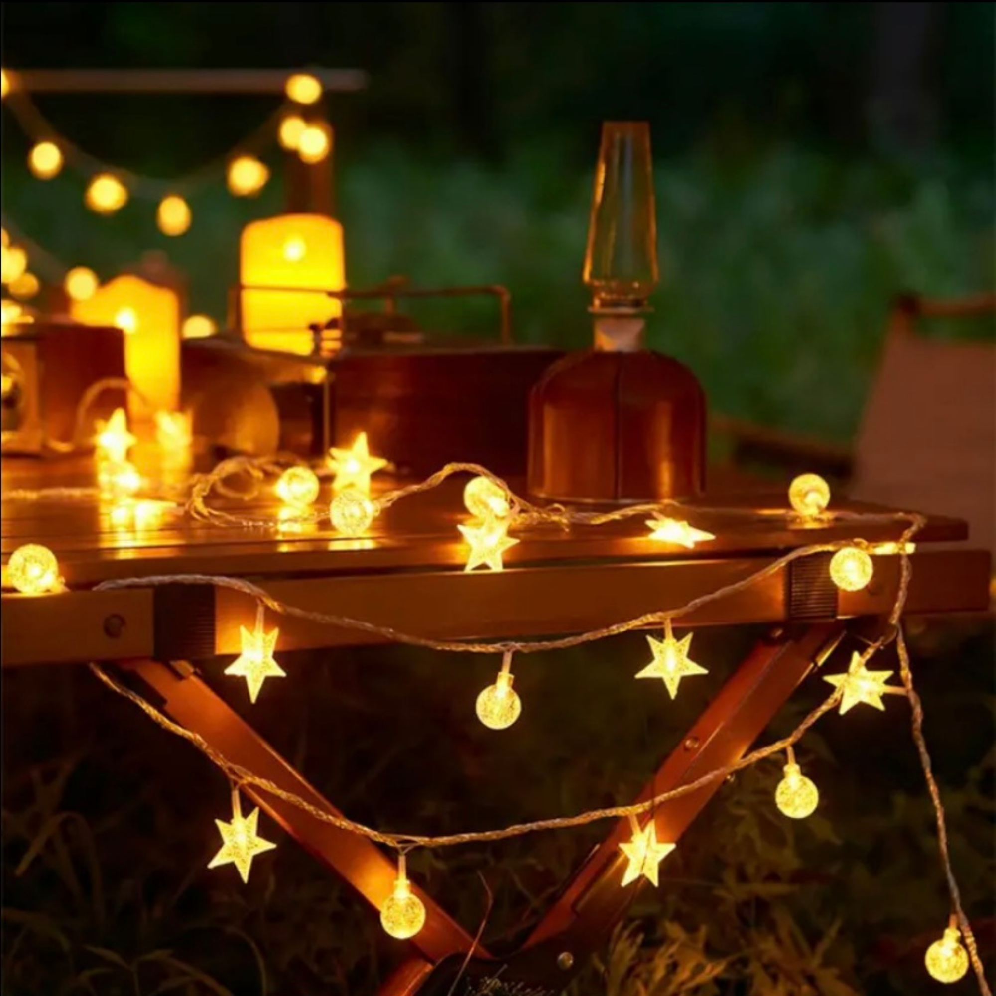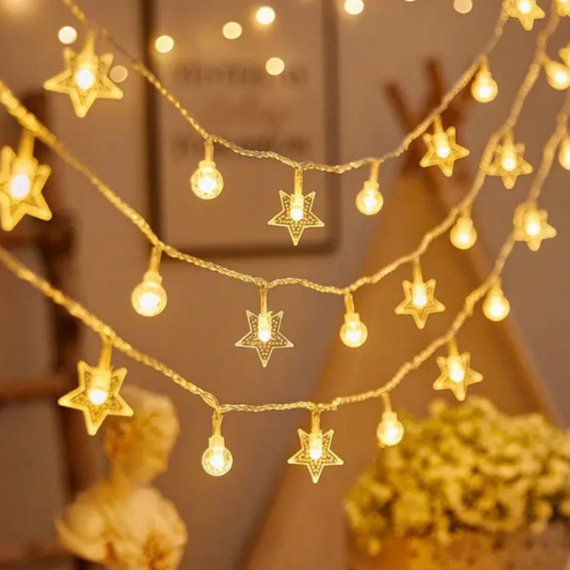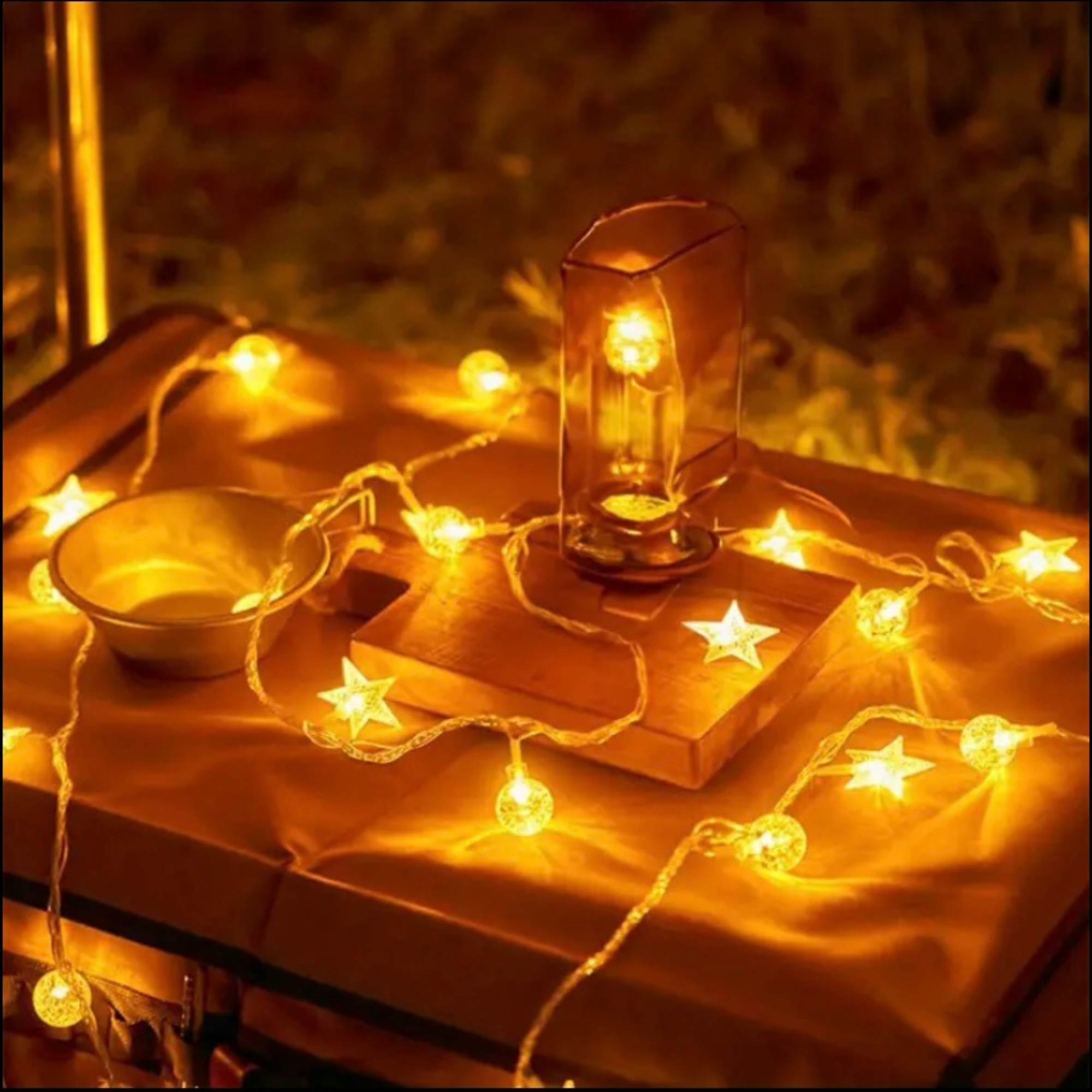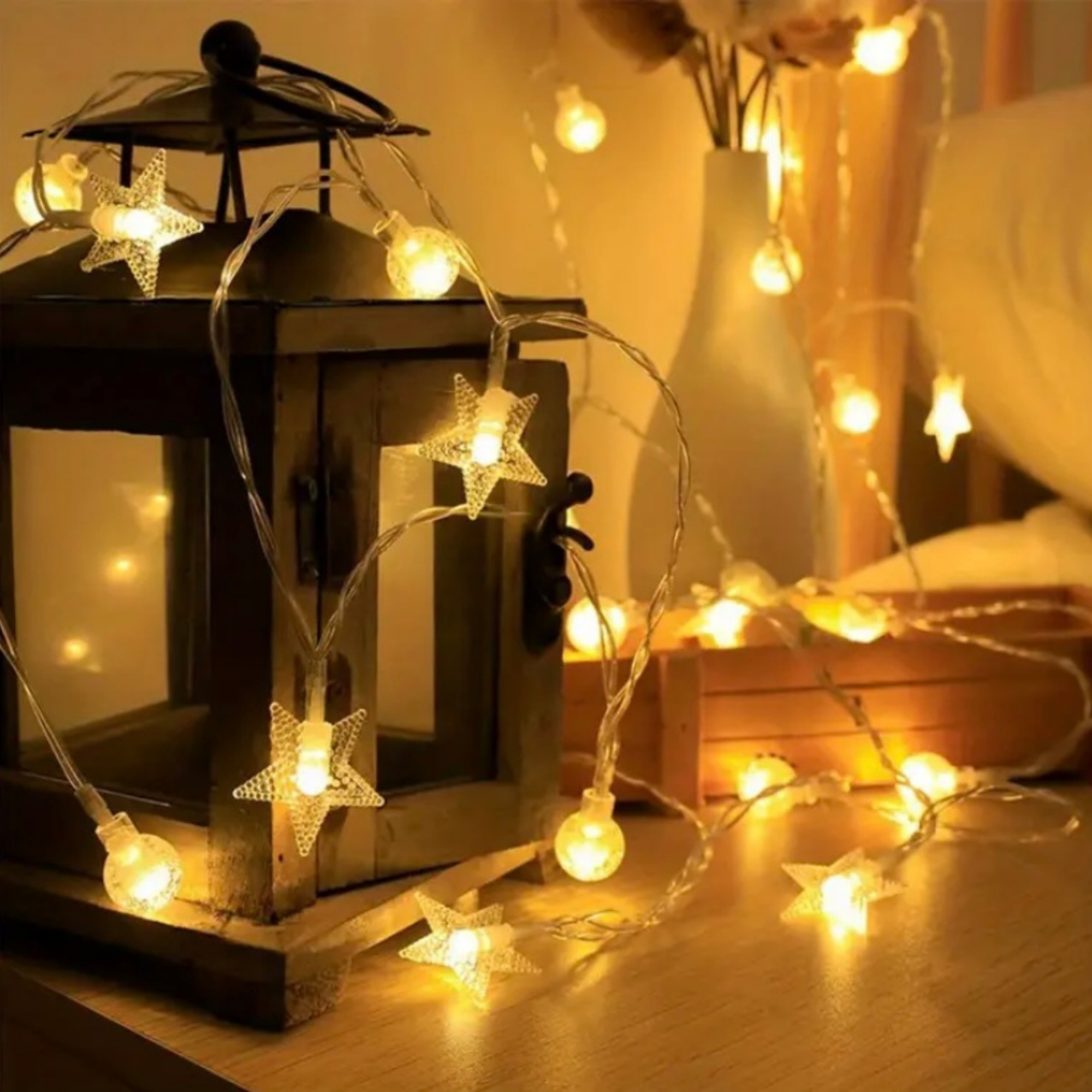 Instalația luminoasă LED cu steluțe este realizată pe cablu subțire și flexibil, fiind ușor de poziționat pe diverse suprafețe. Emite lumină caldă, uniformă, și este destinată utilizării în spații interioare.
