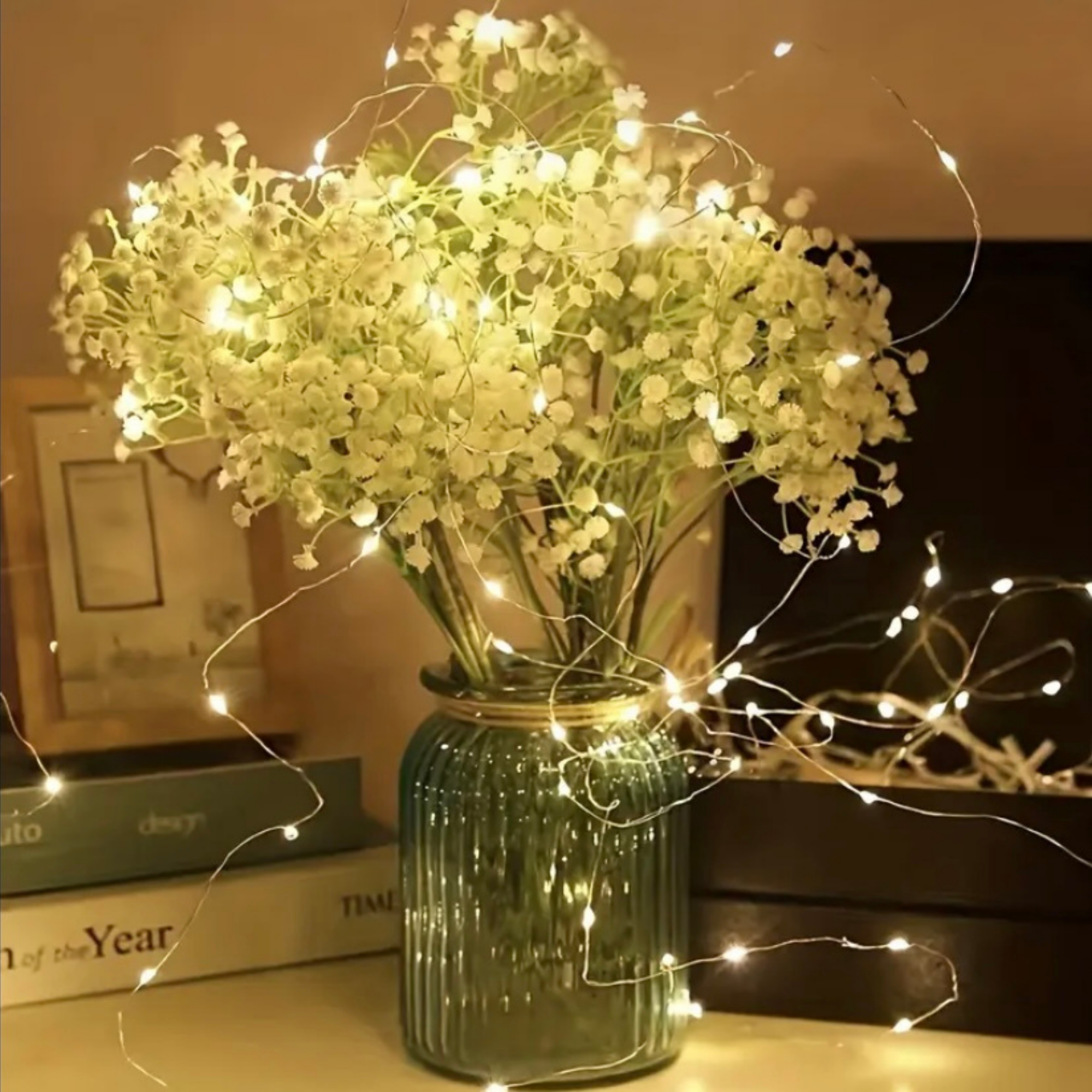 Instalație luminoasă LED pe sârmă, 20 LED-uri, lumină caldă.